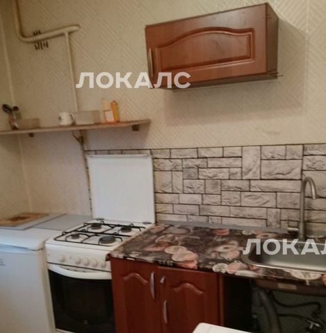 В квартире есть плита, кухонный гарнитур, маленький холодильник.