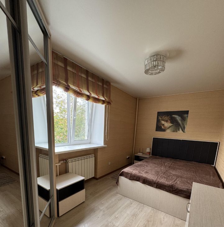 В долгосрочную 2х комнатная квартира на 4 этаже пятиэтажного дома.. Санузел совмещен, балкон застеклен. В спальне 2х спальная кровать, шкаф, в комнате диван, который раскладывается, система хранения.