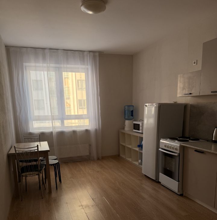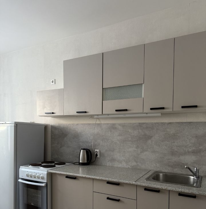 В квартире кухонный гарнитур, холодильник, плита, микроволновка, диван, кровать, шкаф, стиральная машина. Фото соответствуют действительности. В доме круглосуточно находится консьерж, территория охраняется, двор закрыт.