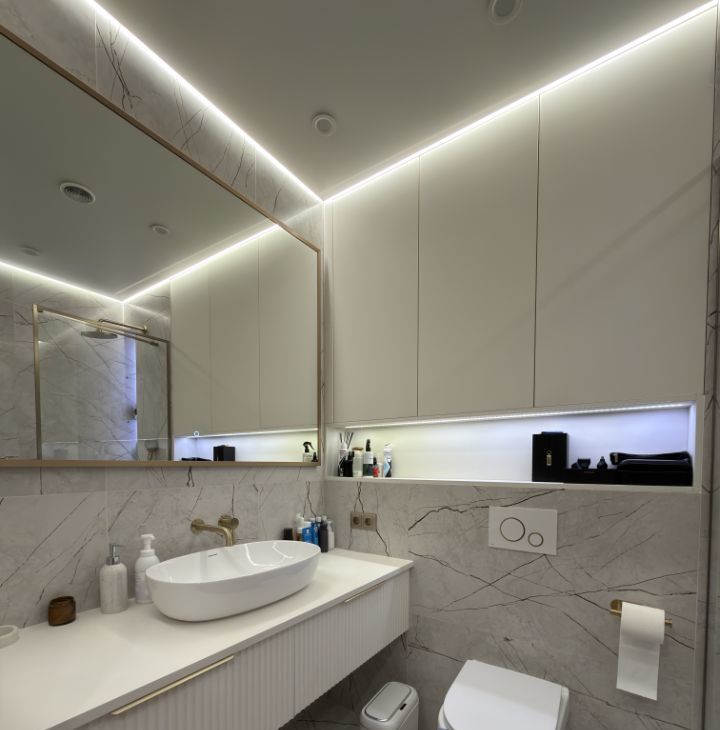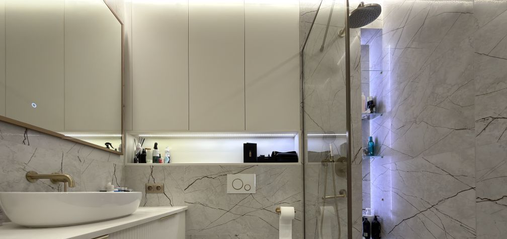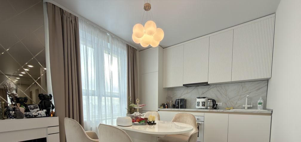 Просторная кухня-гостиная, 2 спальни, совмещенный санузел и гардеробная.