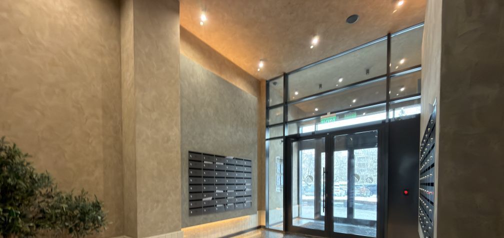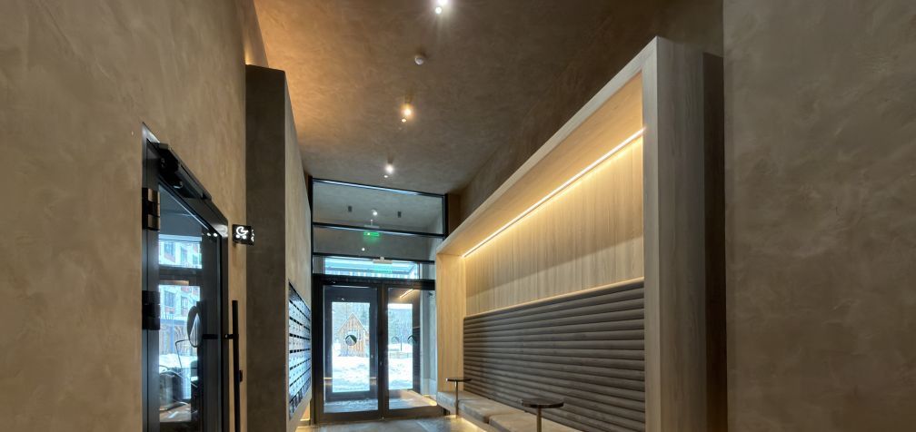 Есть парковка рядом с домой и подземный паркинг, летний сад с лежаками, детская площадка, комьюнити центр.