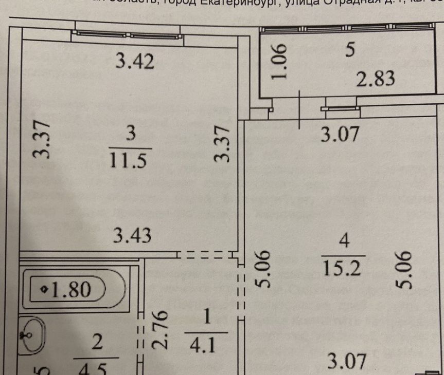 2-к кв. Свердловская область, Екатеринбург ул. Отрадная, 1 (38.0 м²)