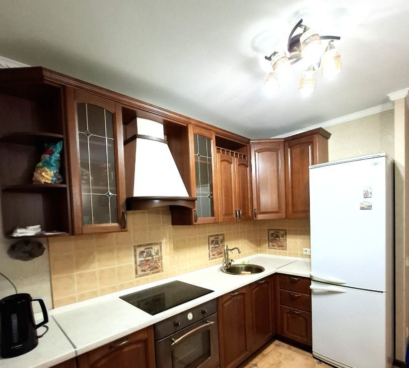 На кухне есть вся необходимая мебель, посуда и бытовая техника.