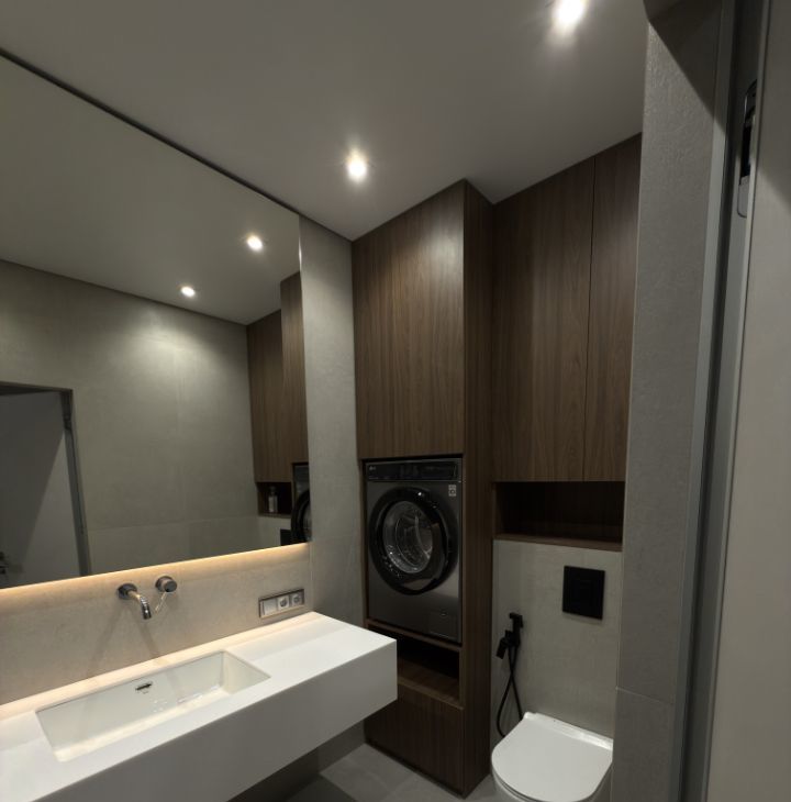 В квартире есть все необходимое для комфортного проживания: качественная мебель, встроенный холодильник, духовой шкаф, микроволновка, индукционная варочная панель, посудомоечная машина, водонагреватель, телевизор 55 диагонали и стиральная машина. Кондиционер сделаем позже.