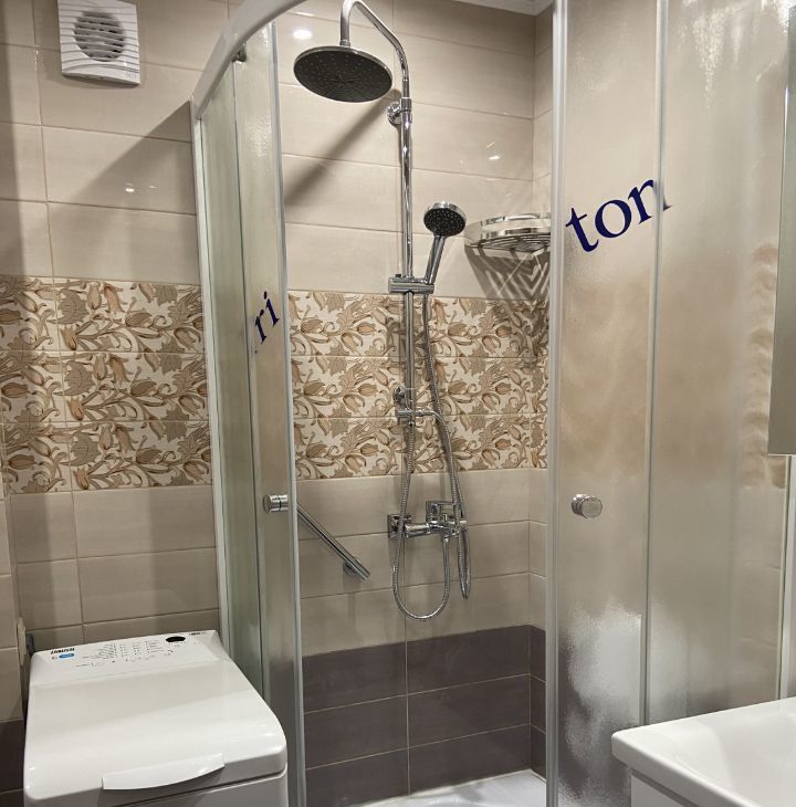 В наличии есть: диван (нет на фото, купили недавно), кровать, шкафы, холодильник, плита газовая, душевая кабина, стиральная машина, водонагреватель.