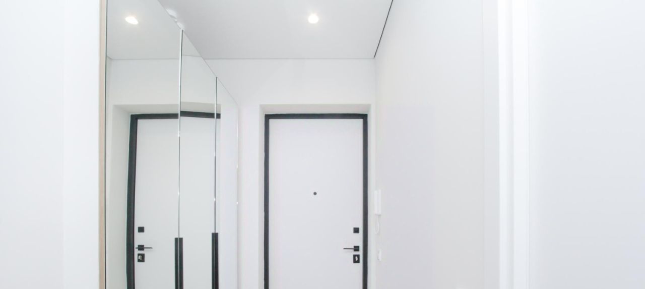 -два вместительных шкафа с зеркальными фасадами в спальне и прихожей