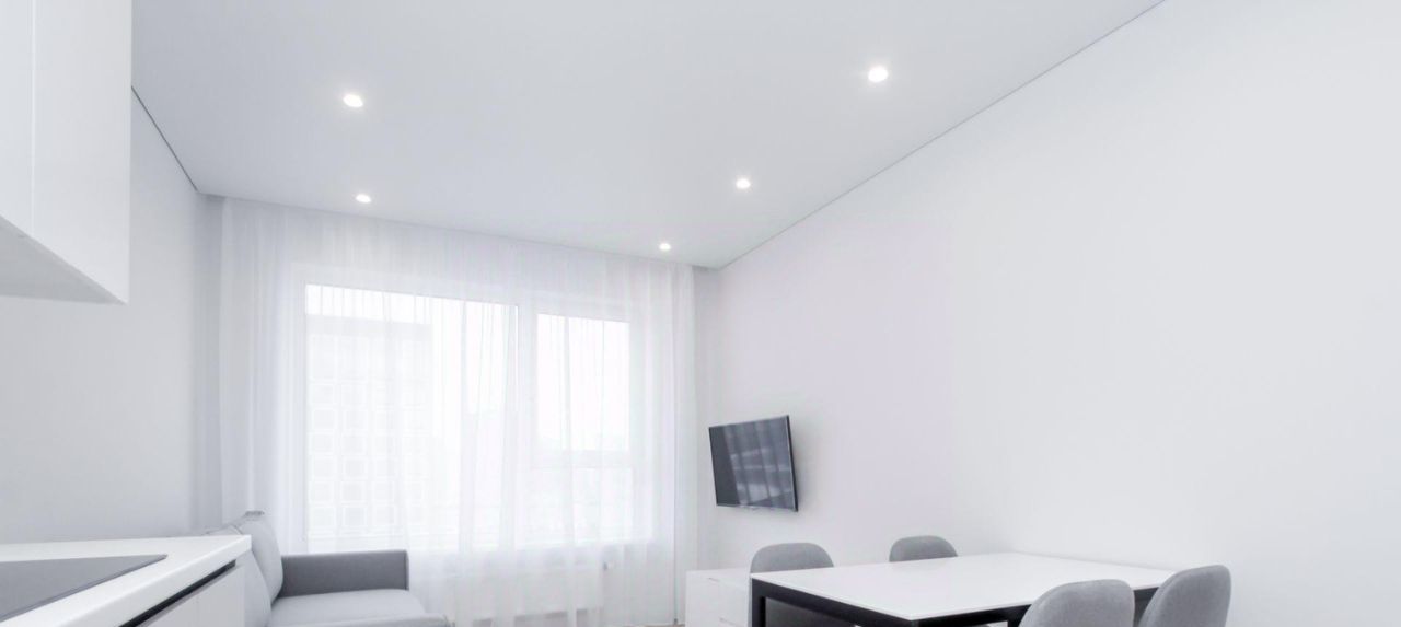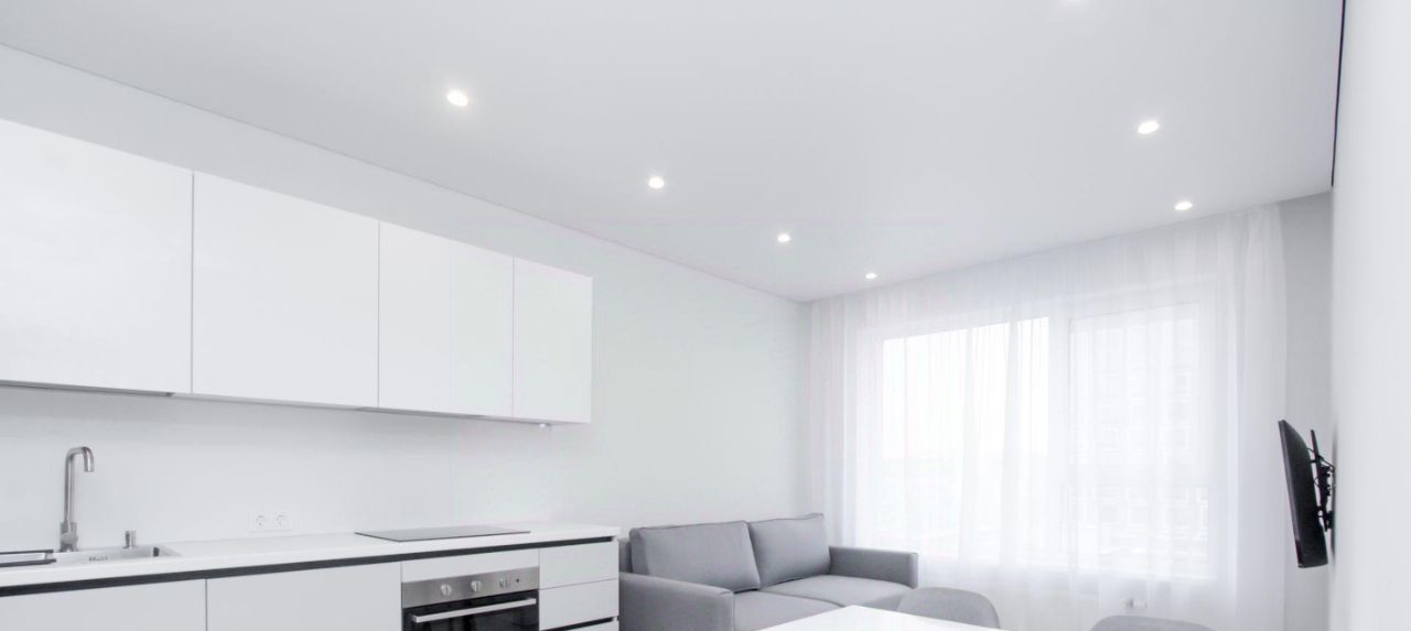 Квартира с индивидуальным интерьерным решением в современном стиле, качественной отделкой, мебелью и техникой для жизни от ведущих брендов (Hotpoint, LG):