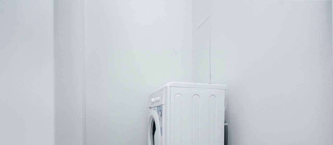 Эргономичная планировка пространства. Напротив уборной с ванной, отдельно расположена постирочная с вместительным встроенным шкафом и стиральной машиной.