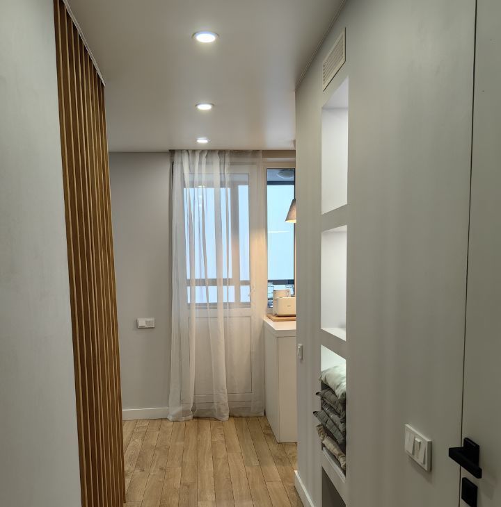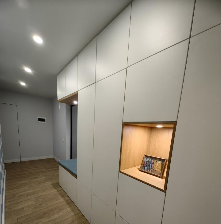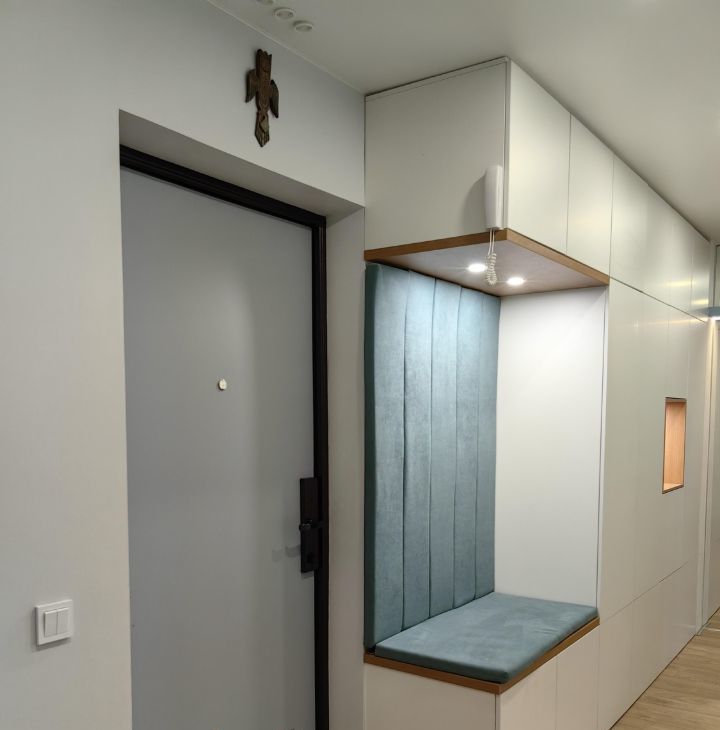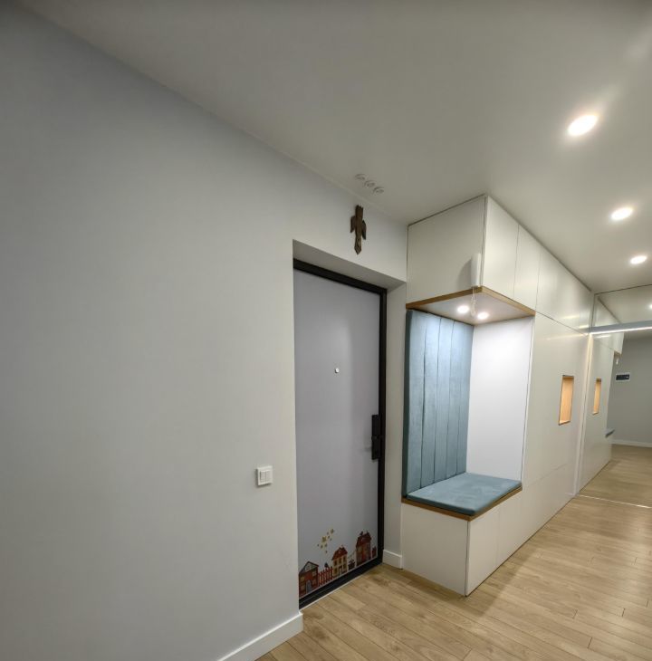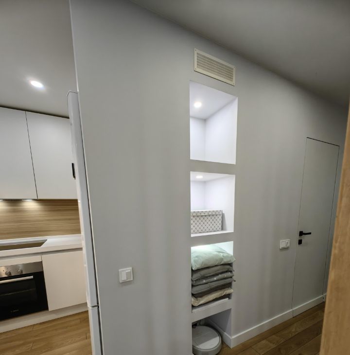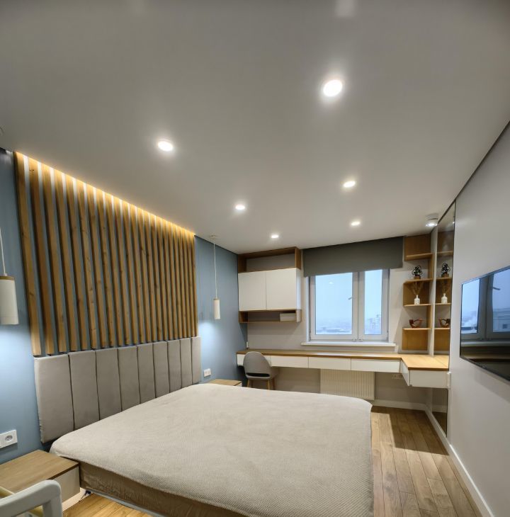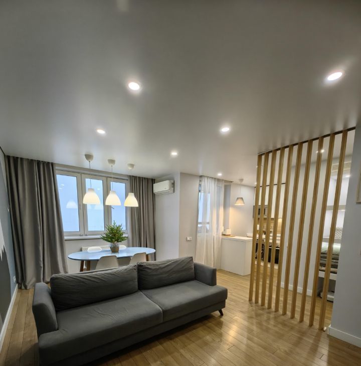 Выполнен дизайнерский ремонт с разными сценариями освещения. В квартире уютно и тихо, вокруг хорошие соседи.
