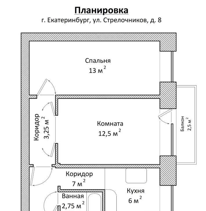 2-к кв. Свердловская область, Екатеринбург ул. Стрелочников, 8 (44.5 м²)
