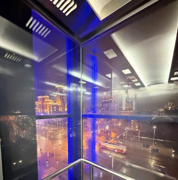 Закрытый двор, панорамный лифт, возможность аренды подземного и наземного охраняемого паркинга, лифт в паркинг. Окна во двор.