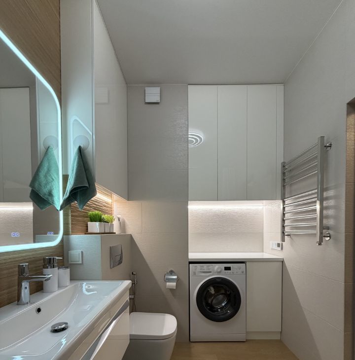В квартире сделан качественный ремонт, есть вся необходимая мебель и бытовая техника, в большей части - новая, установлены кондиционеры во всех жилых помещениях, установлена полная фильтрация воды как на питьевую, так и на проточную воду.