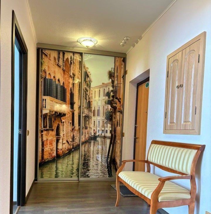 Квартира оборудована всей необходимой мебелью: кухонный гарнитур, два обеденных стола, стулья, стойка с барными стульями; диван-кровать, большая мебельная стенка под вещи; двуспальная кровать 160х200, прикроватные тумбы, трехстворчатый плательный шкаф с зеркалом, комод для белья, косметический столик. Два санузла - оба в плитке, полностью укомплектованы. Бытовая техника: стиральная машина, СВЧ печь и духовой шкаф, холодильник и электрочайник чайник, вытяжка, пылесос, вентилятор, роутер.