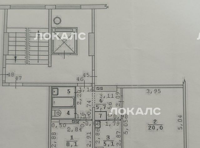 Возле лифта отгорожен отсек на 2 квартиры.