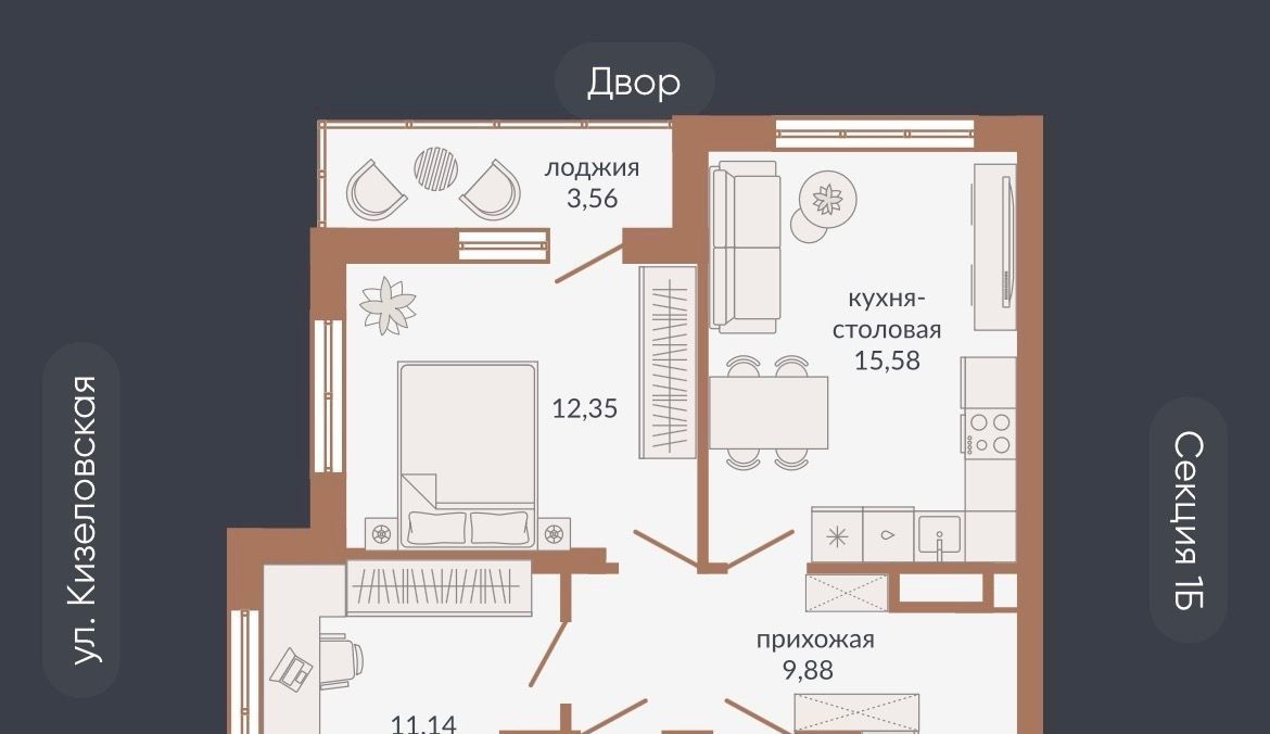 2-к кв. Свердловская область, Екатеринбург ул. Викулова, 78 (54.5 м²)