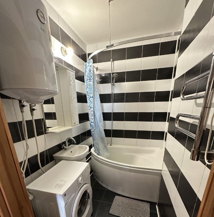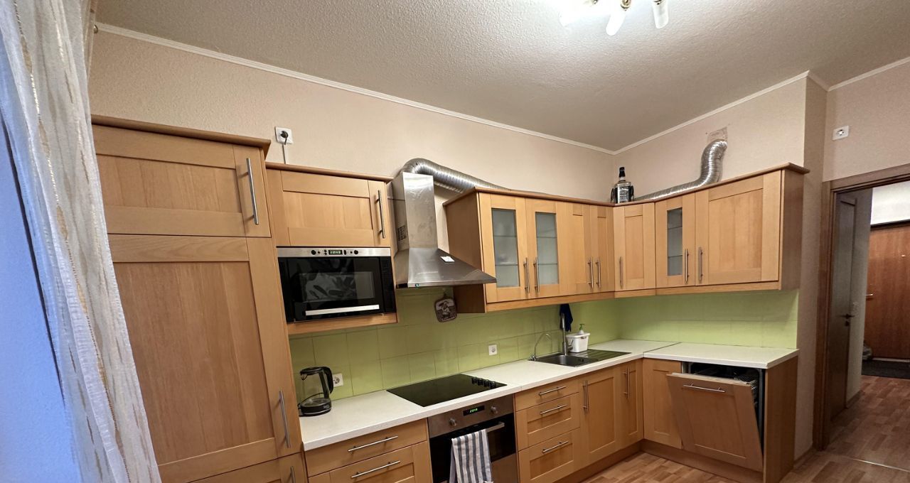 Стоят счетчики на воду, электричество, тепло. Кухня полностью укомплектована: холодильник с морозильной камерой, плита, духовка, микроволновка, посудомоечная машина, вытяжка, чайник, кофеварка, пятиступенчатый фильтр питьевой воды; много мест хранения.