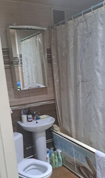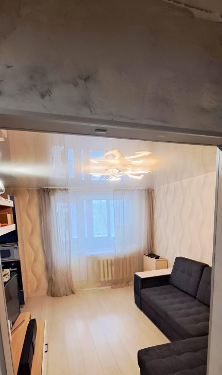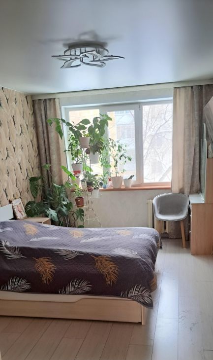Удобный третий этаж ,комнаты раздельные ,кухня совмещена с одной из комнат, туалет увеличен на метр ,комнаты разделяет гардероб .