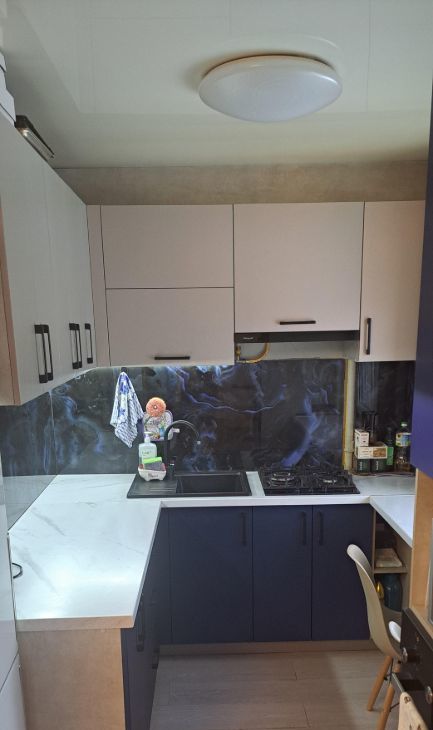 Мебель хорошая,покупалась 1.5 года назад ,кухня под заказ с хорошими фасадом под алюминий .фурнитура вся Германия блюм с доводчиками.