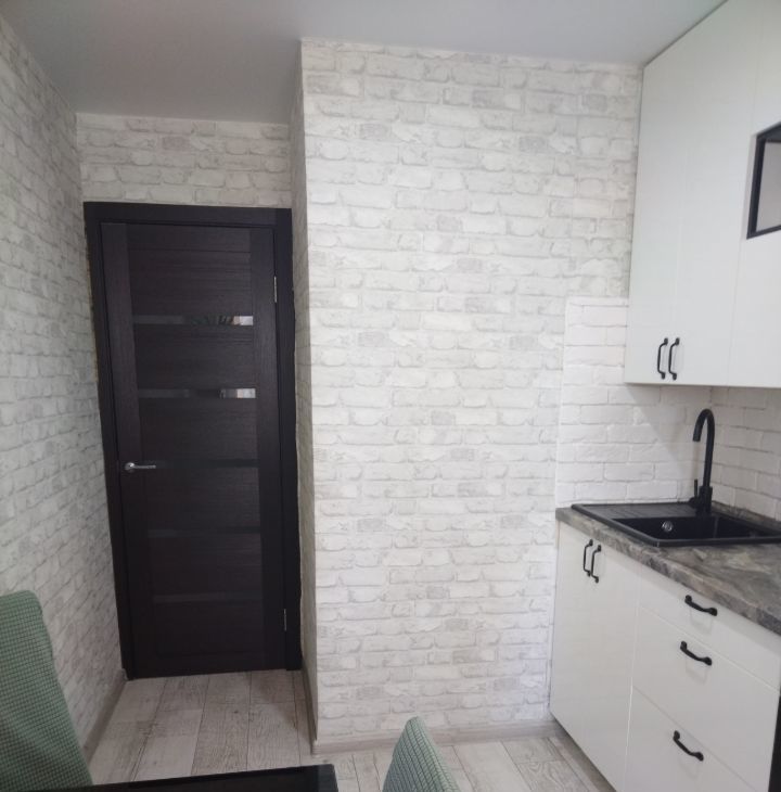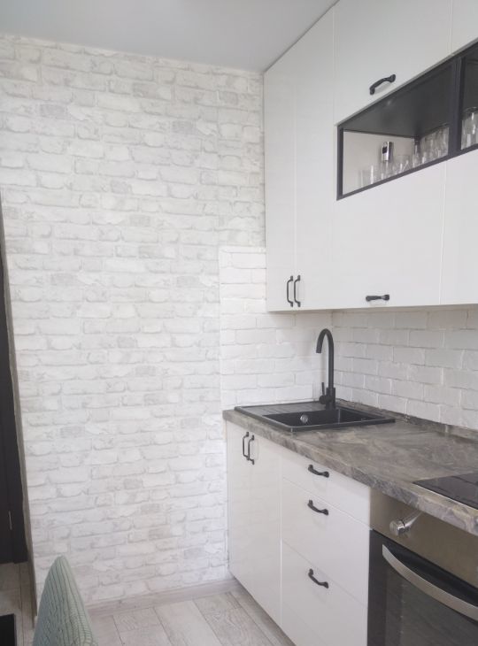 В квартире остается кухонный гарнитур со встраиваемой техникой.