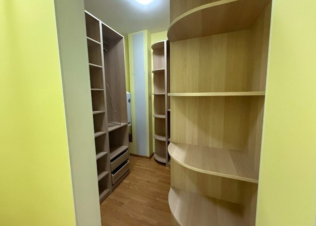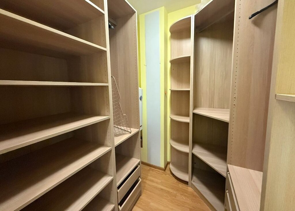 - Уютная спальня с вместительной гардеробной для удобного хранения вещей.