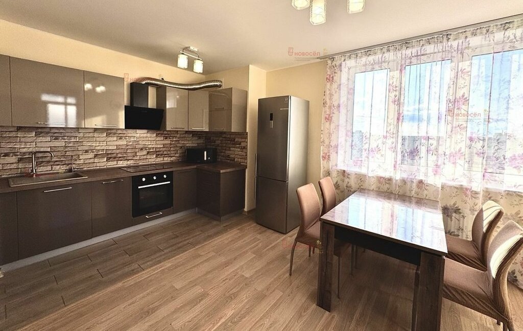 Просторная кухня-гостиная, изолированные 2 жилые комнаты. Укомплектована всей мебелью и техникой: посудомоечная машина, микроволновая печь, электрическая плита, духовой шкаф, вытяжка, стиральная машина, холодильник, телевизор, вентилятор, беговая дорожка.
