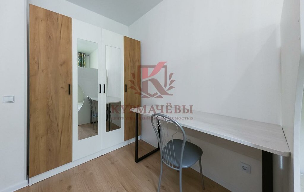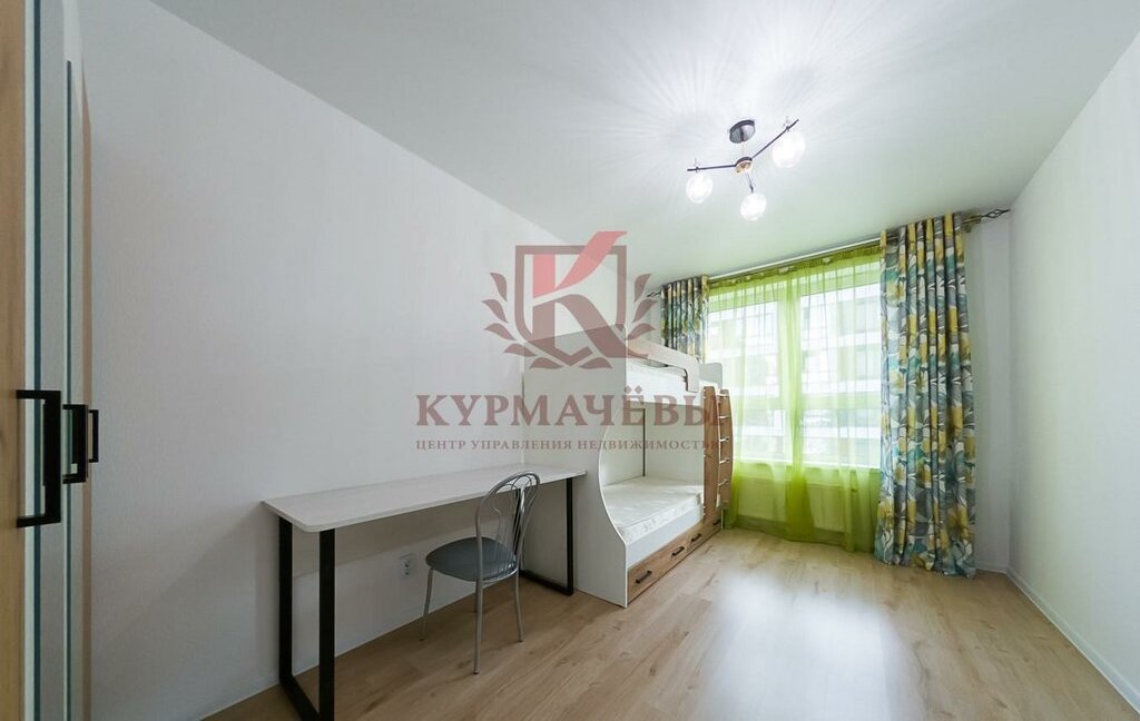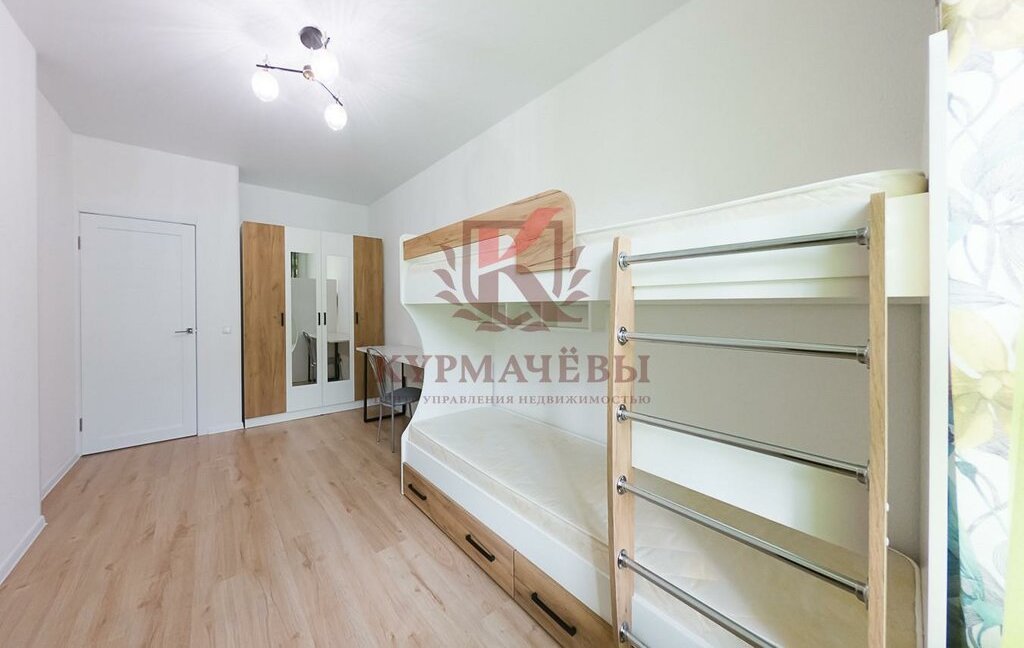 - В детской комнате: двух ярусная кровать, вместительный гардеробный шкаф, письменный стол со стулом.