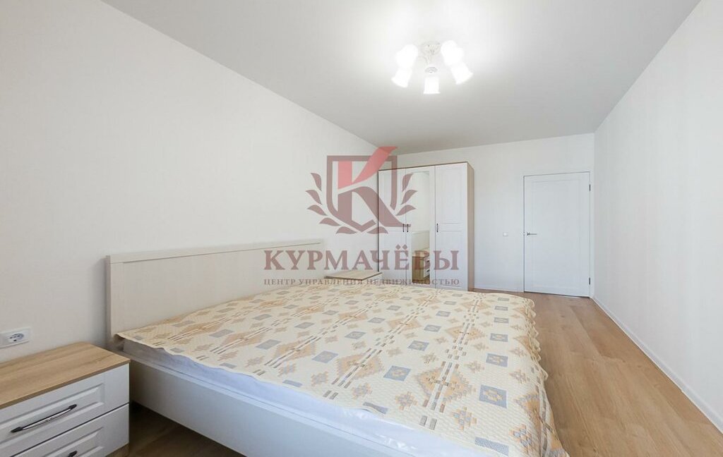 - В спальне: двуспальная кровать с матрасом, прикроватные тумбочки и трехстворчатый гардеробный шкаф.