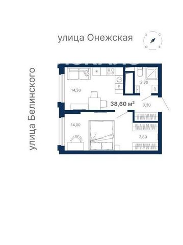 2-комнатная квартира: Екатеринбург, Онежская улица, 4 (39 м²)