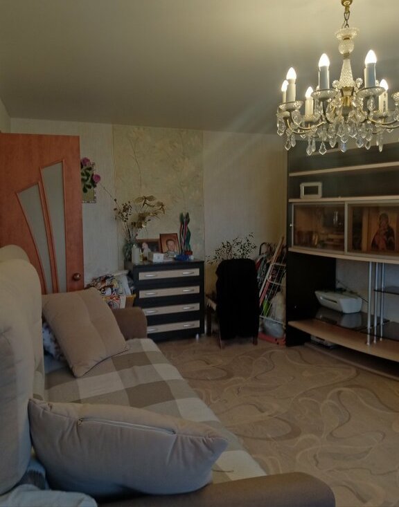 В квартире выполнен косметический ремонт. В ванной и туалете хорошая кафельная плитка. В коридоре остаётся шкаф купе с большим зеркалом и прихожая. Потолки навесные, полы линолеум. В квартире имеется большая лоджия. На кухне остаётся гарнитур. Подробности по телефону.