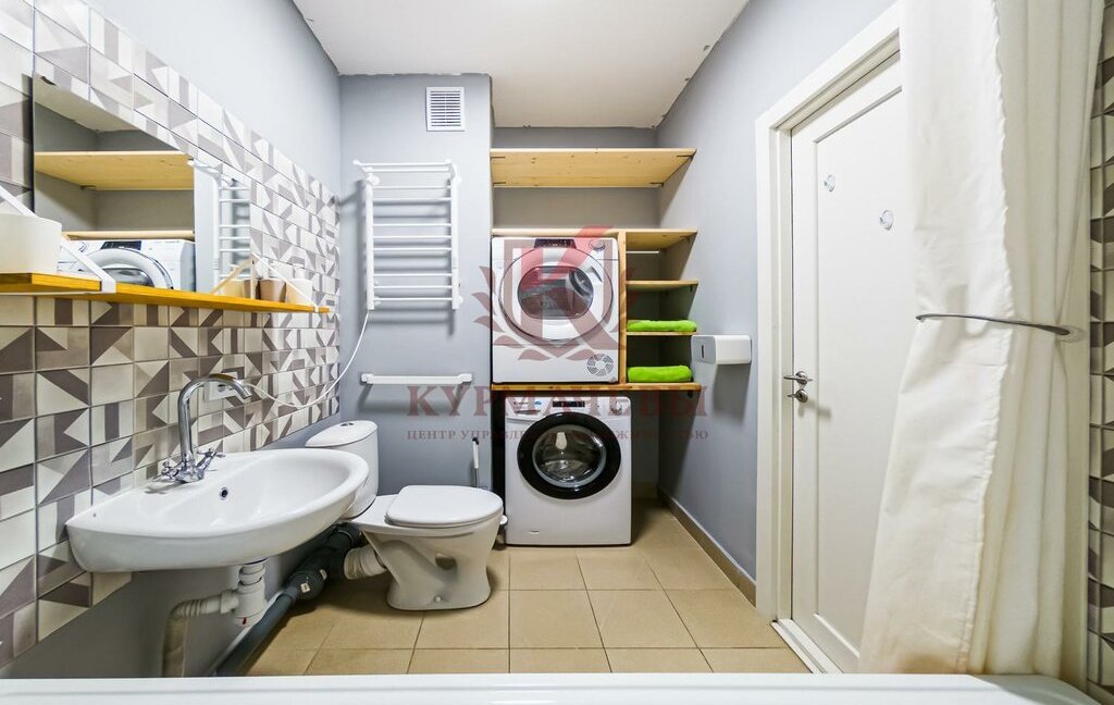Две просторные изолированные комнаты. Есть вместительные шкафы, комоды, письменный стол, телевизор, гардеробная система. Два изолированных сан узла. Стиральная машина, а так же машина для сушки белья.