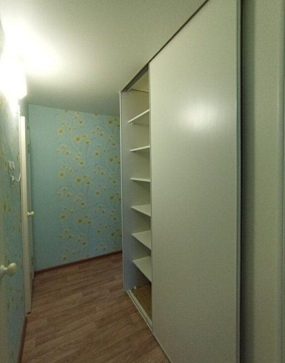 В квартире кровать и диван. Много шкафов и мест для хранения