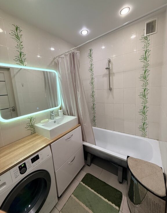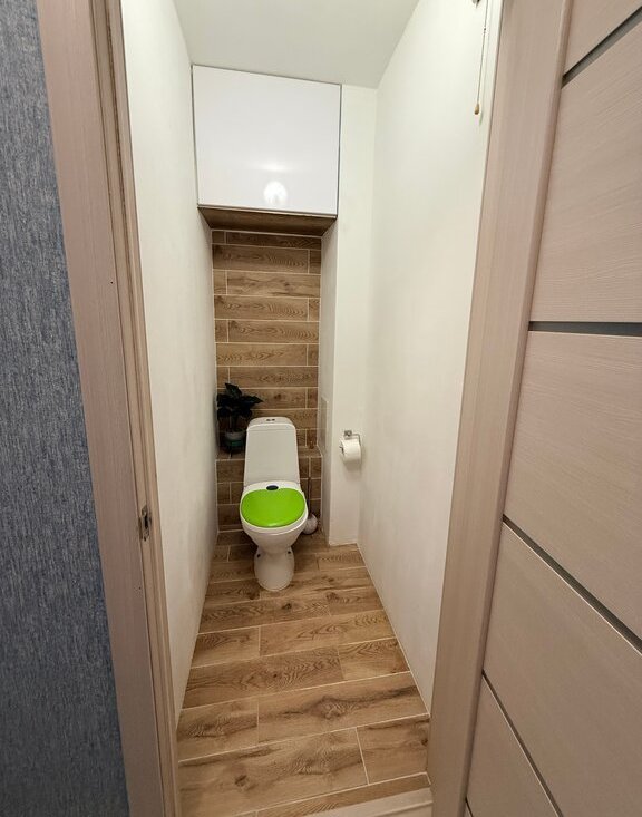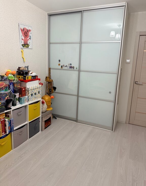 В детской комнате встроенный шкаф-купе. В ванной встроенные шкафы для хранения.