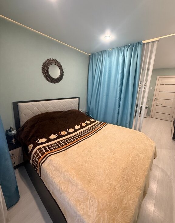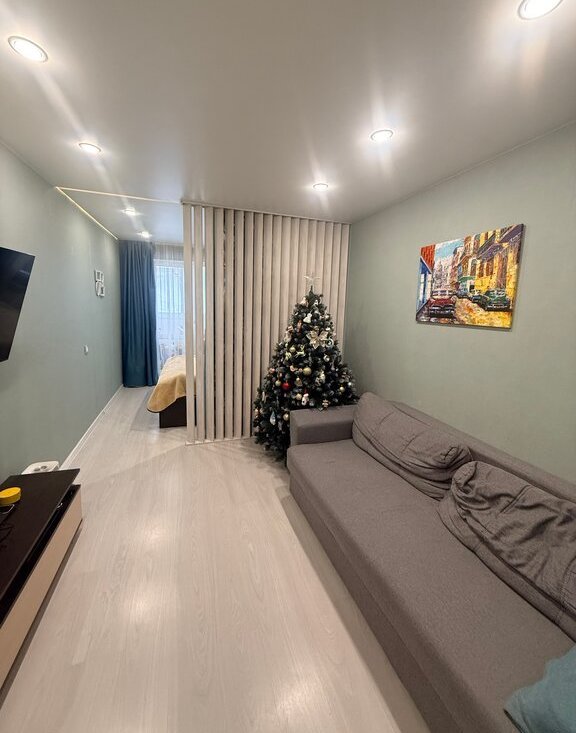 Комнаты изолированы, окна выходят на обе стороны дома, раздельный с/у с ванной, в большой комнате сделано современное зонирование - разделяющее комнату на гостиную и спальню.