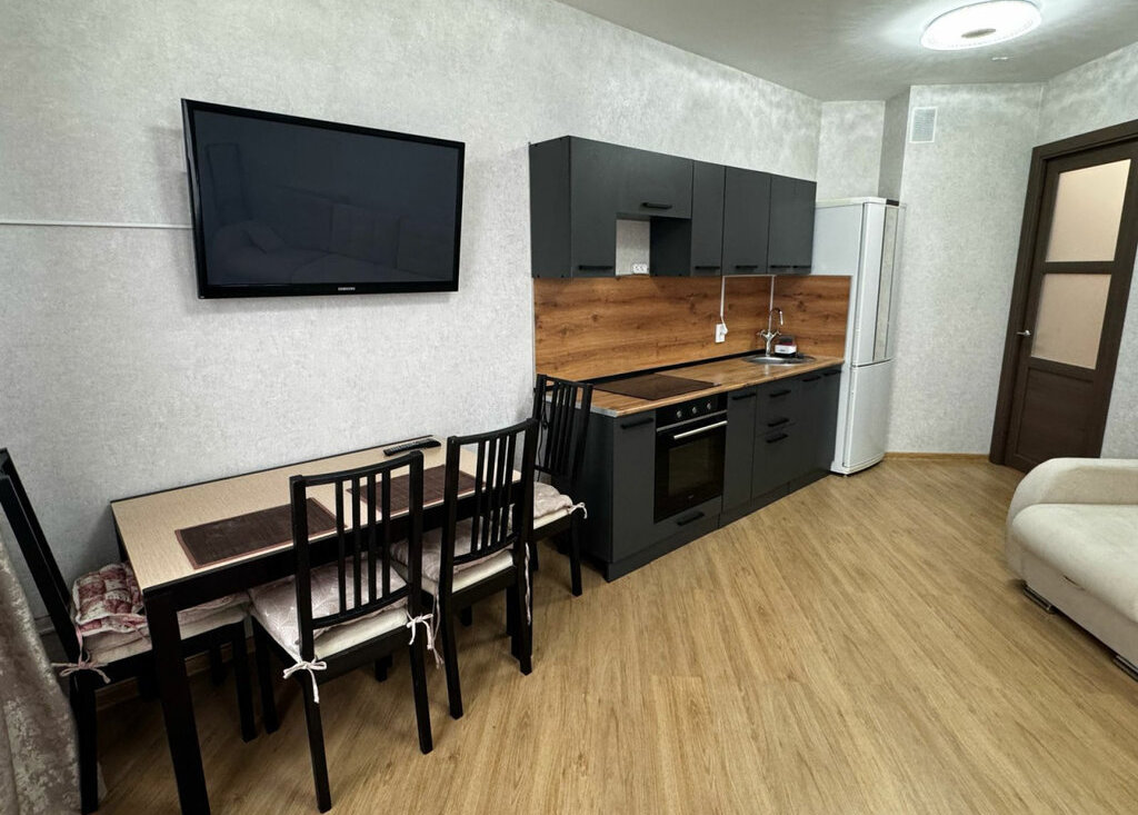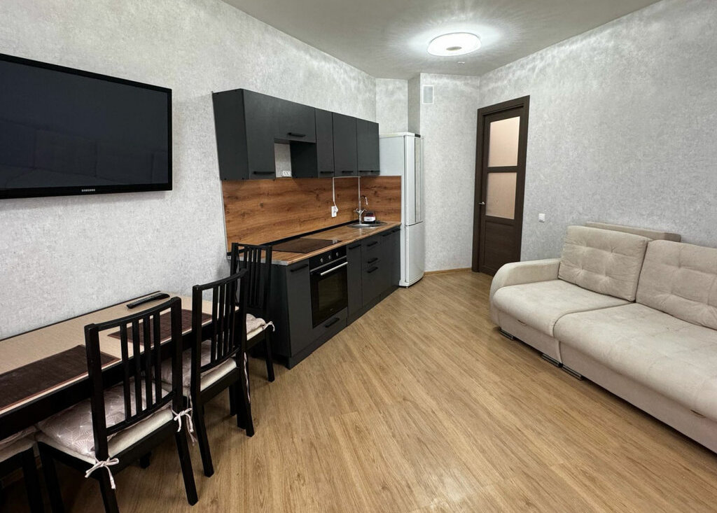 Просторная кухня-гостиная и отдельная спальня.