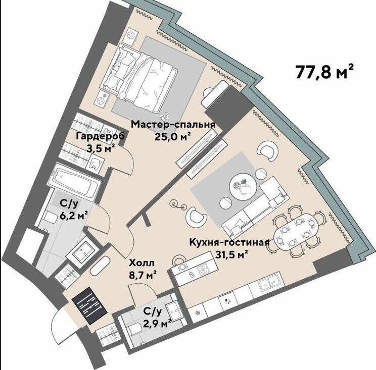 2-комнатная квартира: Екатеринбург, улица Бориса Ельцина, 6 (77.8 м²)