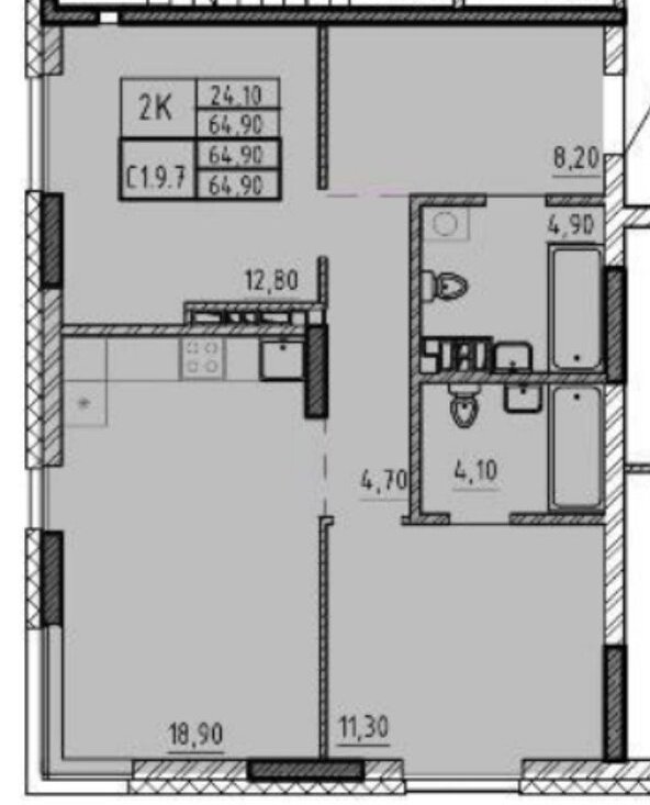 64,9 м²