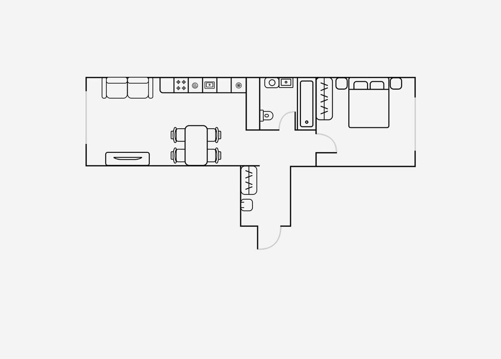 В квартире предусмотрен полный комплект мебели для жизни: