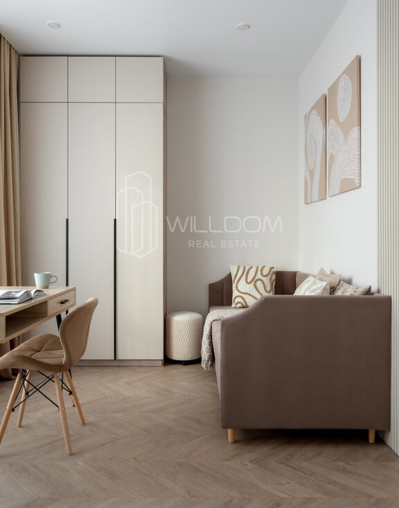 Интерьер выполнен в современном стиле, с использованием качественных материалов.