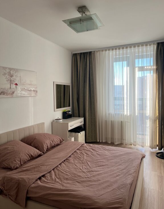 Сдаётся уютная двухкомнатная квартира на 25 этаже монолитного дома 2018 года постройки.