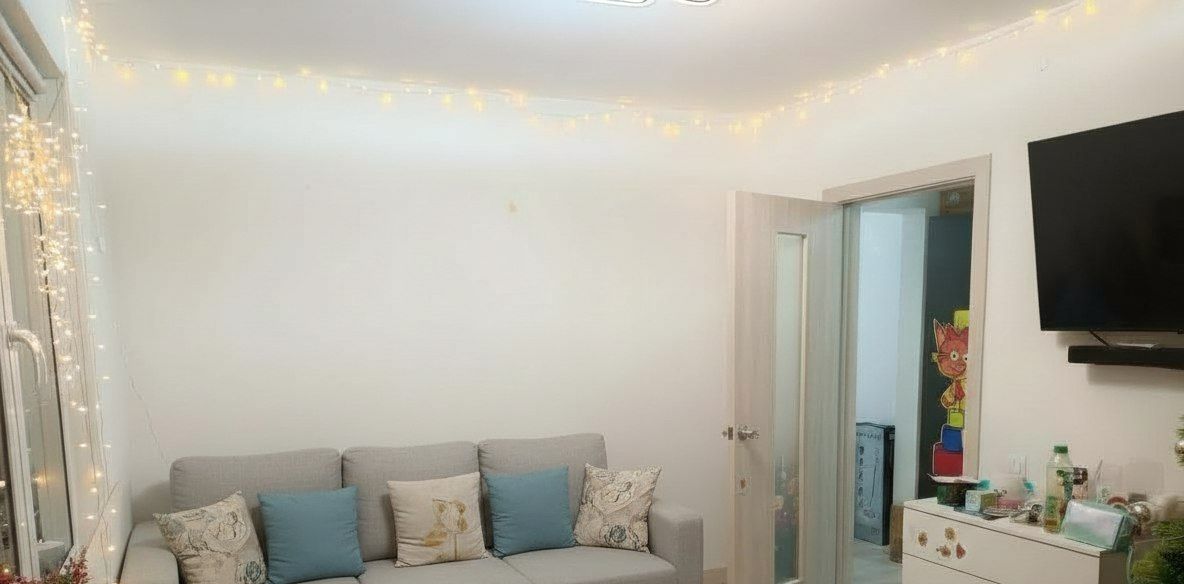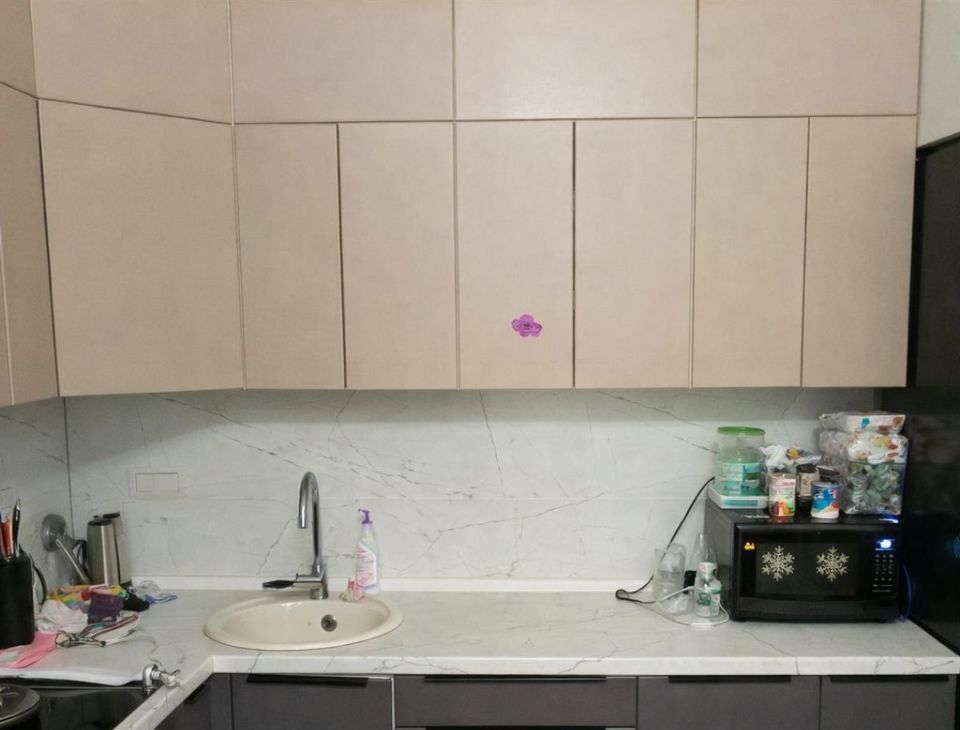 Новому владельцу остаётся кухонный гарнитур,диван в кухне-гостиной,большой шкаф