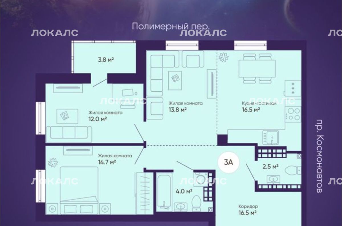 3-к кв. Свердловская область, Екатеринбург просп. Космонавтов, 7А (80.0 м²)
