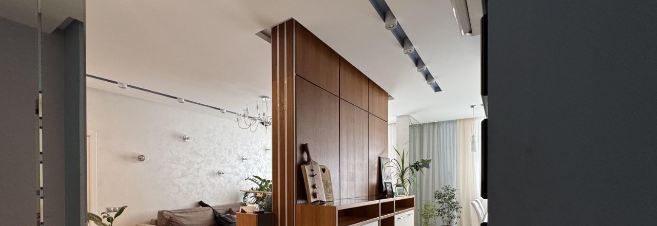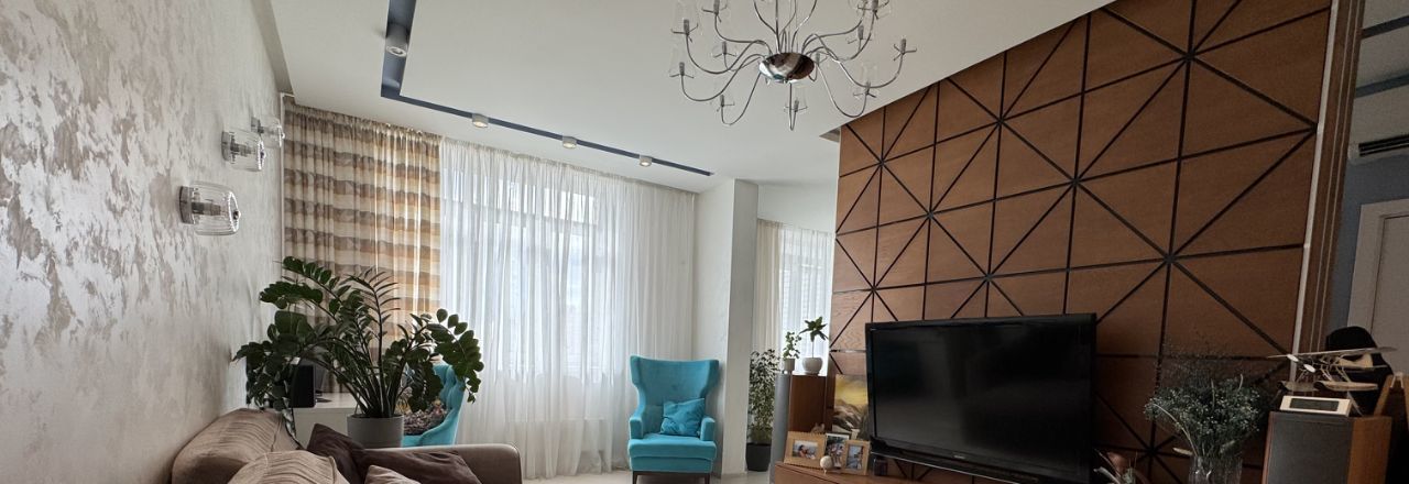 Уютная евротрёшка с дизайнерским ремонтом проекта архитектурного бюро СТУДИЯ 40, общей площадью 98,8 м2. Эргономичная перепланировка с уютной кухней-гостиной, гардеробной и множеством ниш и шкафов. Квартира наполнена всем необходимым, готовы оставить мебель и технику. В отделке использовались качественные материалы, полностью переделана электрика, во всех комнатах есть несколько сценариев освещения, установлен водонагреватель, кондиционеры и подогрев пола в санузлах, потолки практически везде гипсокартон.