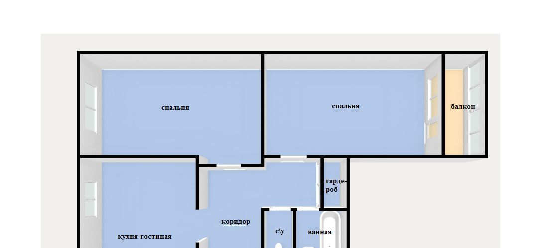 3-к кв. Свердловская область, Екатеринбург ул. Амундсена, 64 (64.0 м²)