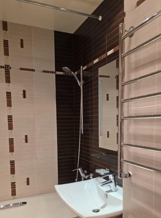 Квартира готова к проживанию: полностью меблирована хорошей мебелью (много мест для хранения вещей), в наличии вся необходимая техника: кондиционер, холодильник, посудомоечная и стиральная машины.Ванная комната с ванной, санузел раздельный.