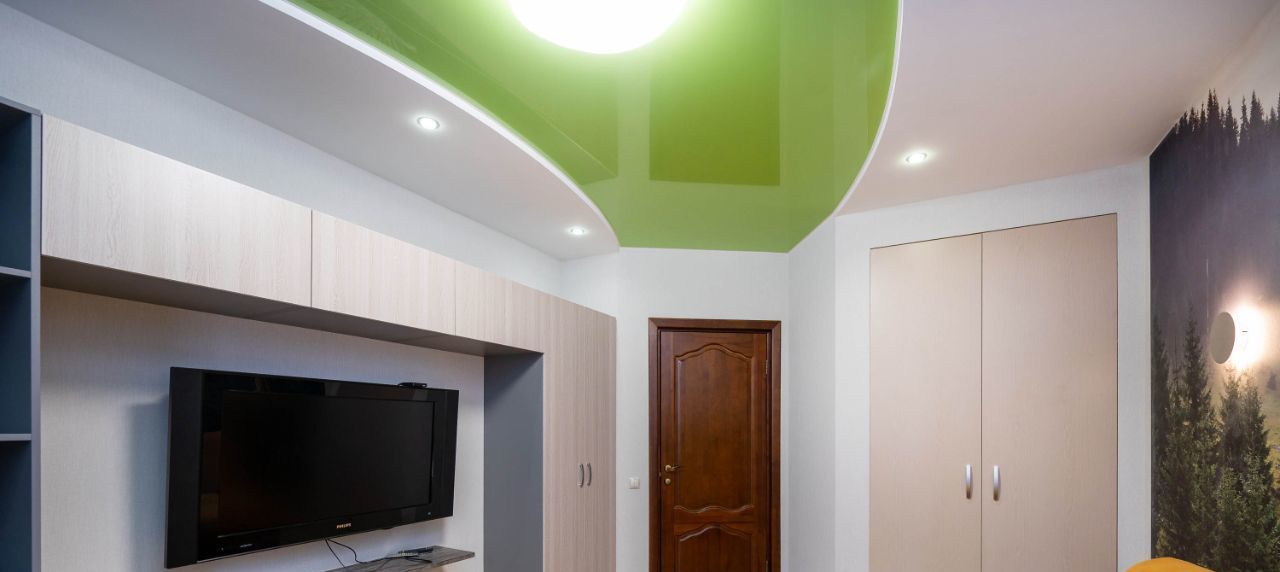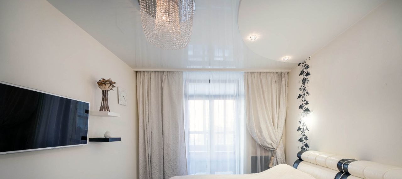 В гостиной части комнаты расположен обеденный стол с 4-мя стульями, большой диван, телевизор 65 дюймов и кондиционер. Также есть выход на просторную лоджию с диваном и видом в очень тихий двор, на котором детские площадки соседствуют со спортивными и двумя кортами (использование бесплатно для жильцов дома) футбол/волейбол/теннис летом, зимой катки фигурный и хоккейный.