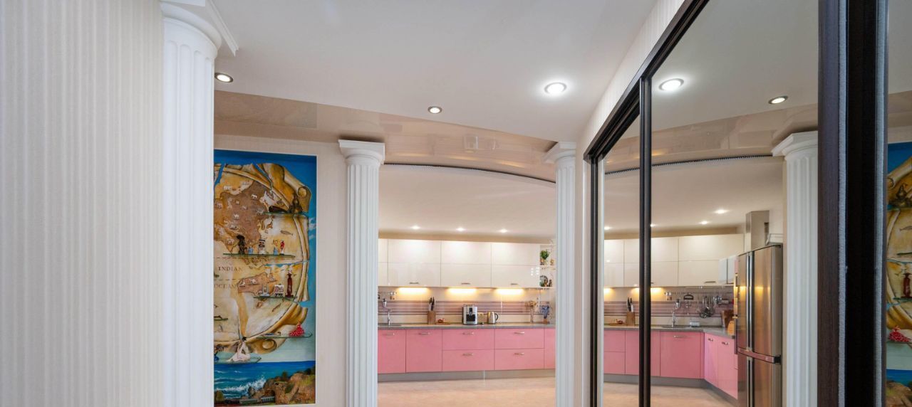 На входе, рядом с просторным коридором расположен гардероб на трёх взрослых человек, в котором можно разместить все свои вещи зашёл, переоделся в домашнее и готов отдохнуть. Кухня-гостиная встречает минималистичным дизайном, при этом оборудована премиальной бытовой техникой BOSH (полноразмерная посудомойка, духовой шкаф, микроволновая печь), Холодильник Side-by-Side 3+ от Sharp, автоматическая кофе-машина Krups, варочная поверхность, встроенная в каменную столешницу.
