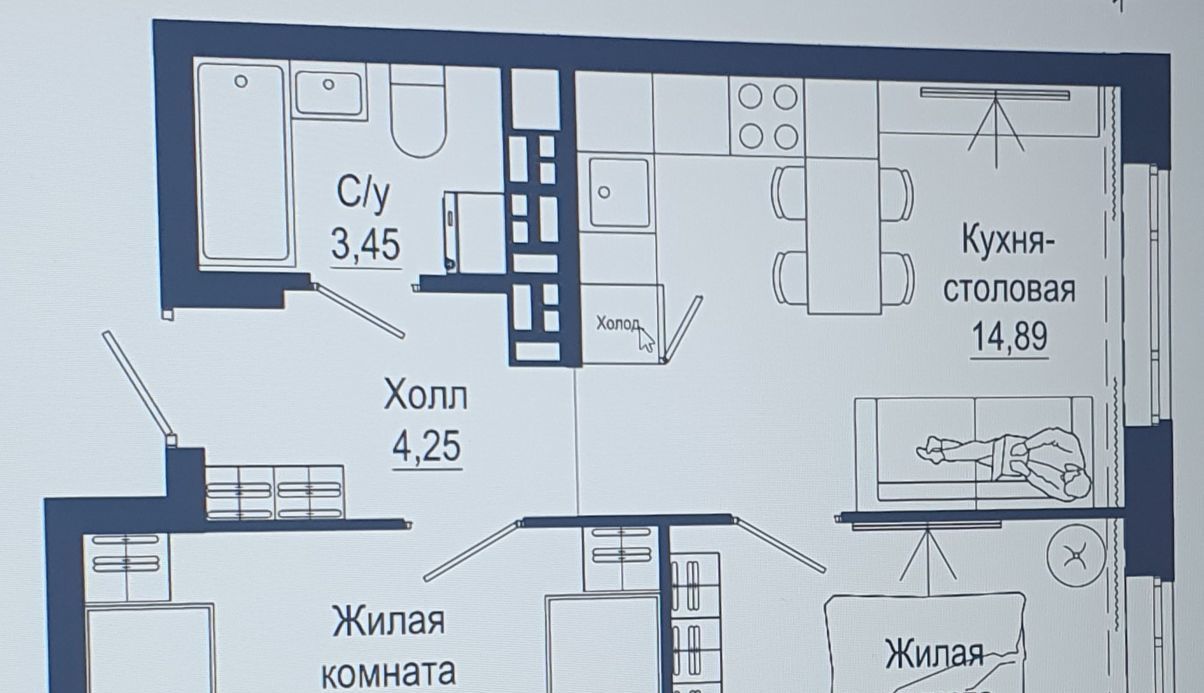 Планировка: кухня-гостиная, две изолированные комнаты, совмещенный санузел.