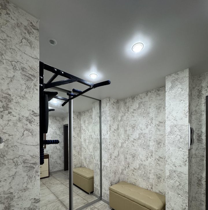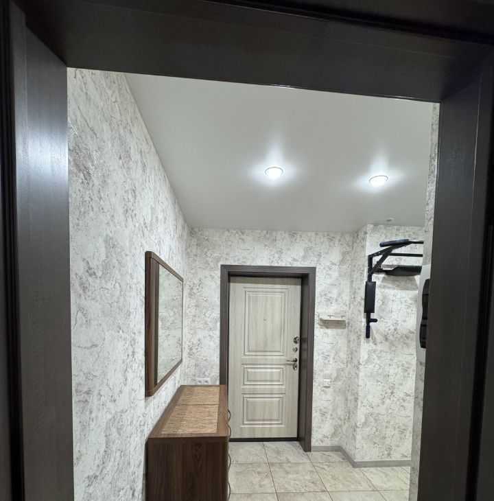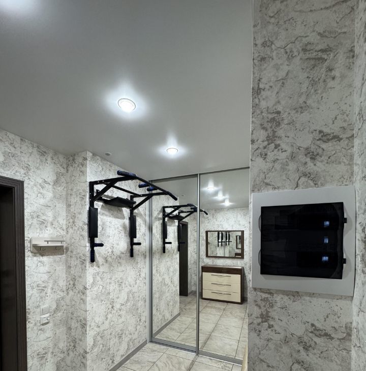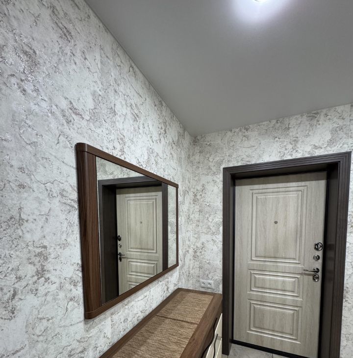 Прихожая — просторная входная зона с системой хранения и большим зеркалом, визуально расширяющим пространство.