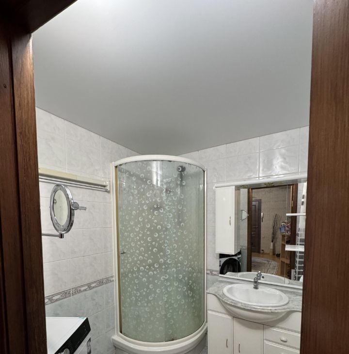 Раздельный санузел — ванная комната с душевой зоной и полноценной ванной. Тёплый пол обеспечивает дополнительный комфорт.