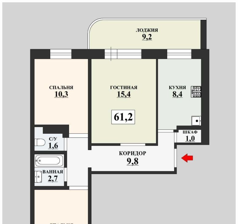 В квартире площадью 61,2 м2 сделан качественный ремонт в светлых, пастельных тонах.